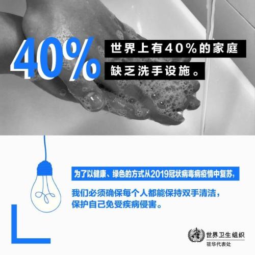 洗手设施对于预防传染病的传播至关重要,但40%的家庭缺乏这一设施。具有抗微生物药物耐药性的病原体广泛存在于水和废物中,需要对其进行合理管理,以防止其传播给人类。特别是,医疗卫生机构必须配备供水和环境卫生设施,包括肥皂和水(这是减少SARS-CoV-2和其它感染传播的最基本的干预措施),必须提供安全实施大多数医疗程序所必需的可靠能源,以及对卫生工作者的职业保护。