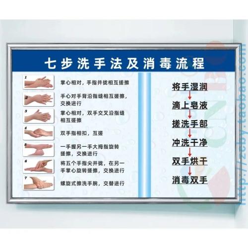 世界卫生组织推荐的七步洗手法,能有效清除手部的病菌 。