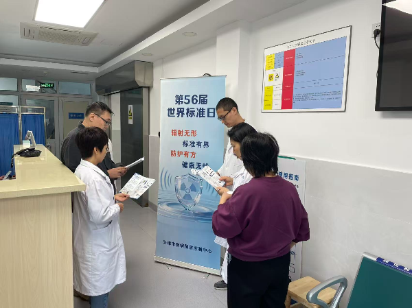 职业健康所开展第56届世界标准日宣传活动 辐射无形,标准有界;防护有方,健康无忧。在第56届世界标准日来临之际,天津市疾病预防控制中心职业健康所积极组织放射卫生专业技术人员开展标准宣传活动。2025年10月16日,在天津医科大学第二医院为核医学科放射工作人员开展了《职业性皮肤放射性污染个人监测标准》(GBZ166-2024)的讲解与宣传。细致讲解了对于操作非密封放射性物质的工作人员,在每次工作结束后,应对人体手、足、面、颈、躯干及头发等暴露部位进行放射性表面污染监测,还应对工作人员职业暴露时穿戴的衣物及防护用品进行放射性表面污染监测。此外非密封放射性物质使用单位应制订皮肤和体表放射性污染监测计划,同时制订质量保证计划,规范监测记录及其档案保存。这场活动不仅传递了知识,更将抽象的标准化作了守护一线医务工作者的有力工具,为放射工作人员的职业健康构筑坚实防线。