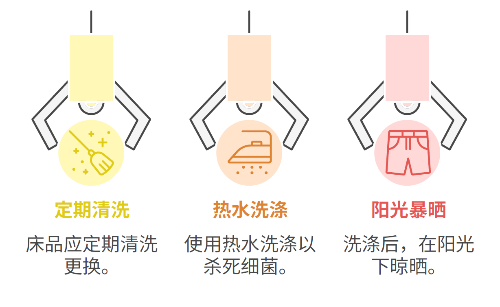 孩子每天在床上的时间很长,床品卫生不容忽视。建议定期更换清洗床单、被罩、枕套,有条件的话用热水洗涤并晾晒效果更好。枕芯、被芯也可以定期晒晒太阳,利用紫外线杀菌。阴雨天气可以考虑用除螨仪或烘干机。