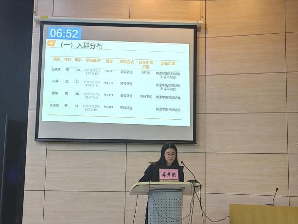 随后进入案例汇报环节,10位汇报人员依次登台,围绕典型案例展开深入分享。汇报内容紧贴工作实际,详细还原了疫情发现、流调溯源、密切接触者筛查管理、防控措施落地等全流程细节,数据详实、逻辑清晰,充分展现了我市结核病防控队伍的专业素养与应急处置能力。