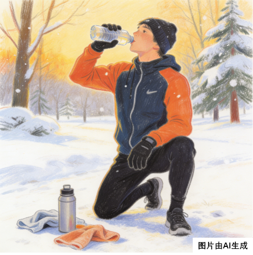 4.口渴感被“压低”:低温会抑制人体的口渴中枢,故而相较于炎热环境,在寒冷条件下运动后的自觉性饮水行为会减少,水分摄入量也相应较低。
