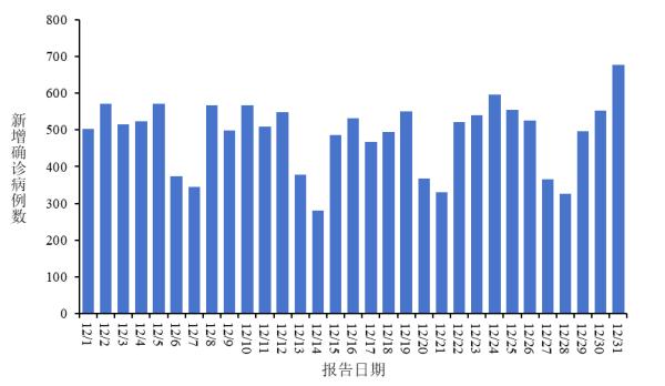 2025年12月1日-12月31日,全国31个省(自治区、直辖市)及新疆生产建设兵团报告新增确诊病例15129例,其中重症病例70例、死亡病例1例(为基础疾病合并新冠病毒感染死亡病例),报告病例数低位波动。见图2、图3。