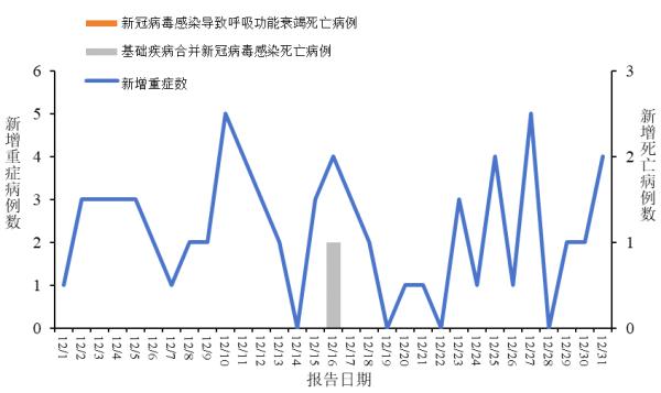 图3 全国新冠病毒感染新增重症和死亡病例报告情况