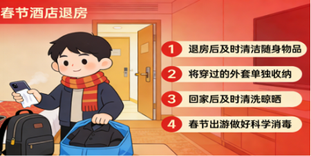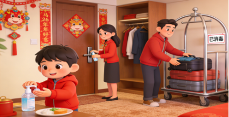 春节出游人流多,酒店就成为我们流动的家,做好酒店客房消毒防护,是守护旅途健康的关键!让我们春节旅行更安心。